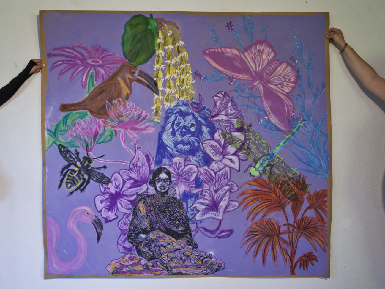 L’artiste actuellement présent, Noé Cauderay, propose une grande diversités de pratiques artistiques : dessin, peinture, céramique, pièces sonores, films d’animations, sculptures, etc.